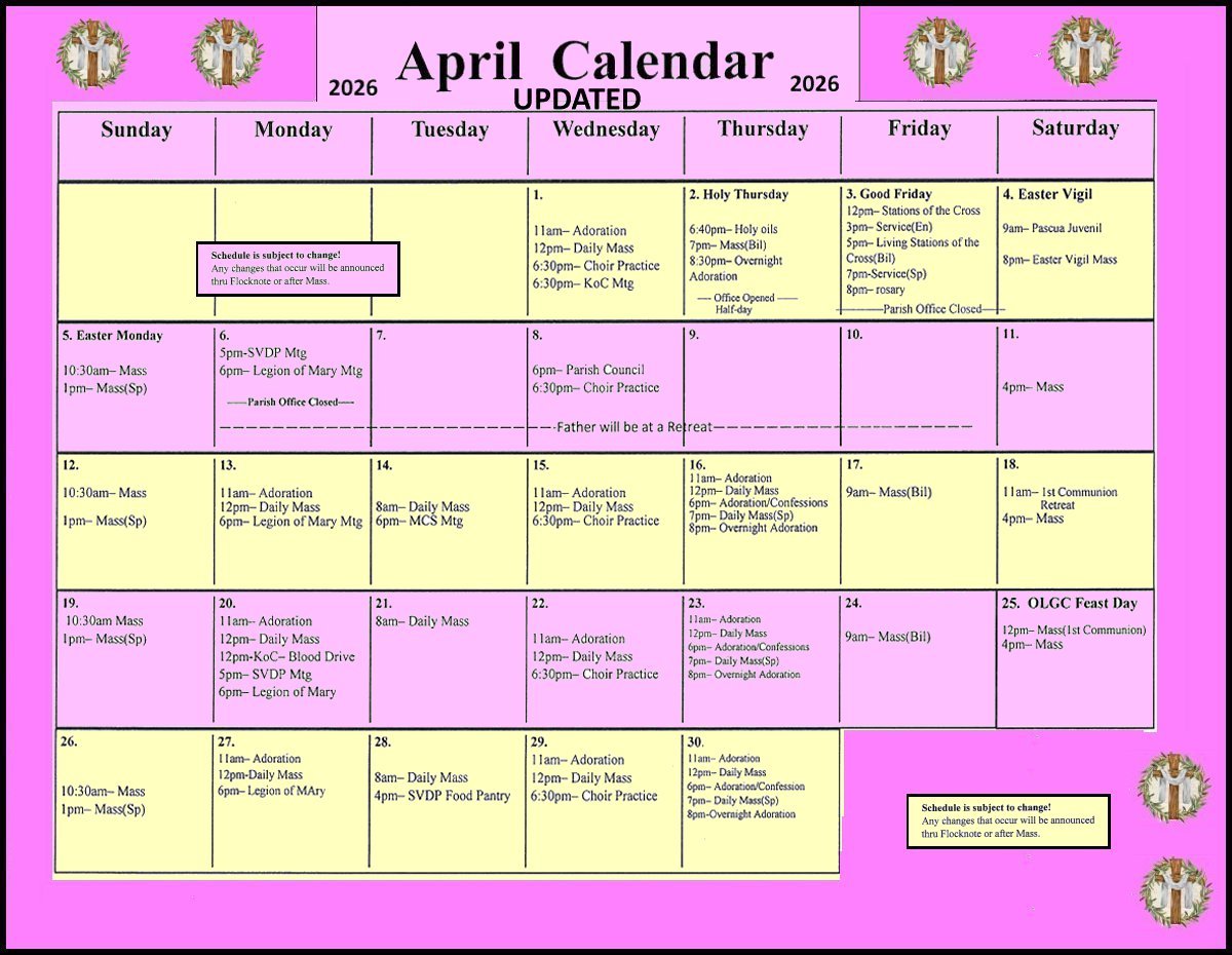 Weekday Holy Hour Adoration schedule: